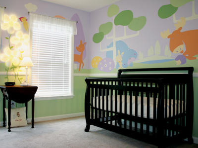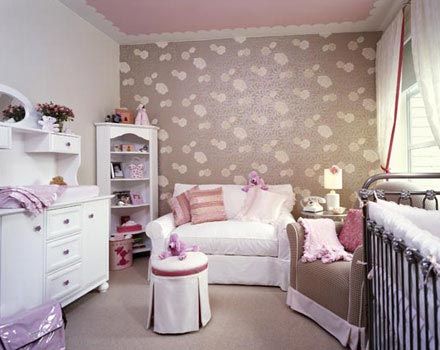 Colors that are commonly used in baby girls’ decor include pink, lavender and white and colors that are considered gender-neutral include shades of brown, yellow and green. You can also wallpaper the entire room or wallpaper just one wall. Either way, consider a contemporary pattern such as stripes or damask for an easier redecorating transition in the future.